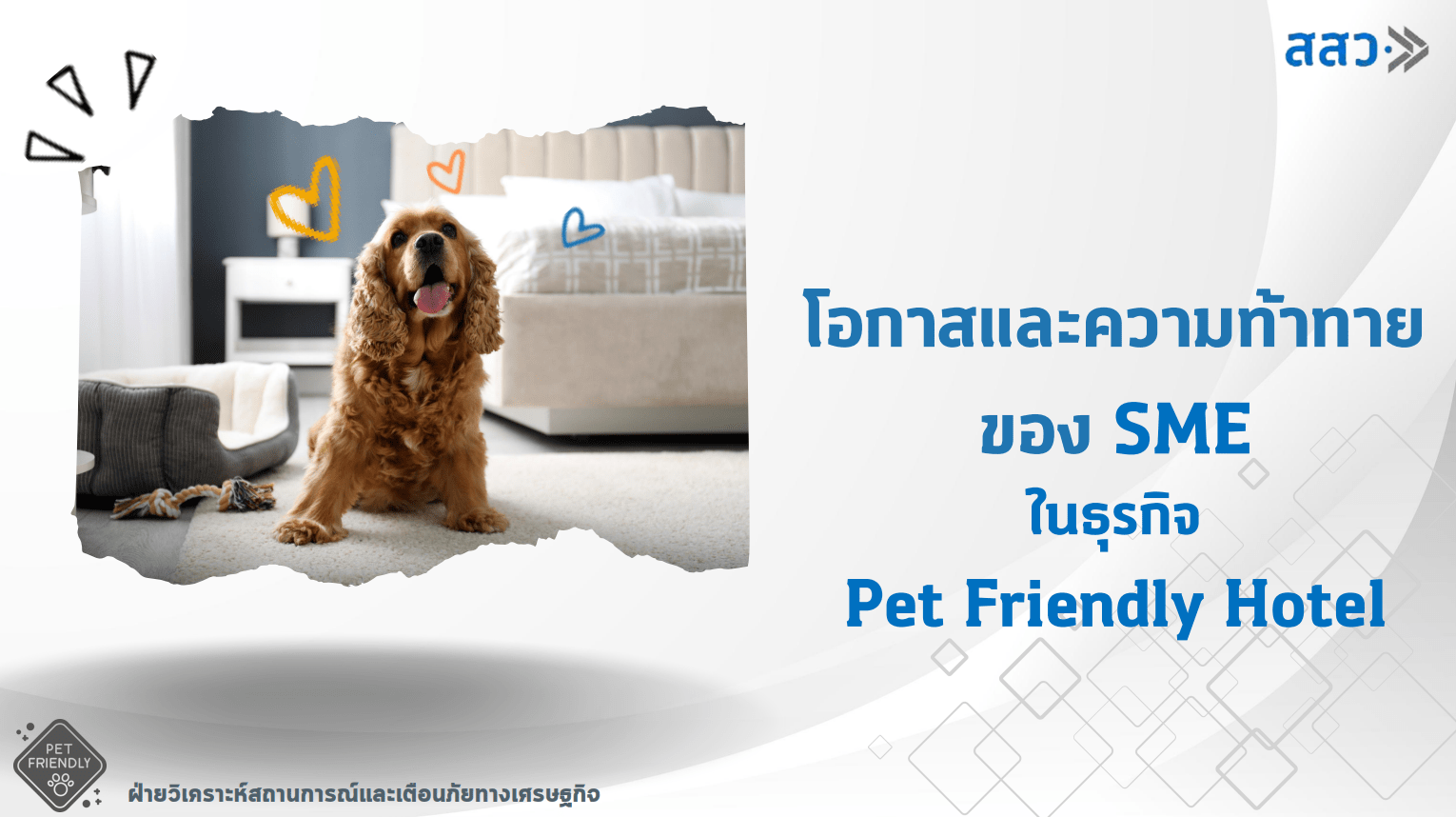 สสว. เล็งเห็นแนวโน้มการเปลี่ยนแปลงดังกล่าวจะส่งผลต่อการปรับตัวของธุรกิจที่พักแรม จึงได้ทำการศึกษาธุรกิจ Pet Friendly HotelHotel เพื่อให้ทราบถึงสถานการณ์ของธุรกิจ กลไกการขับเคลื่อน ประเด็นปัญหาและอุปสรรค รวมทั้งโอกาสของธุรกิจที่จะปรับตัวรองรับการเปลี่ยนแปลงดังกล่าว เพื่อกำหนดมาตรการส่งเสริมหรือสนับสนุนเพื่อ SME ในธุรกิจ Pet Friendly Hotel ต่อไป