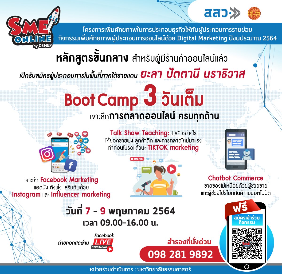 สำหรับผู้ที่มีร้านค้าออนไลน์แล้ว ที่อยู่ในจังหวัดชายแดนใต้ (ยะลา ปัตตานี และนราธิวาส) ฟรี!!! ไม่มีค่าใช้จ่าย อบรบและเวิร์กชอป 7 เมษายน-9 พฤษภาคม 2564